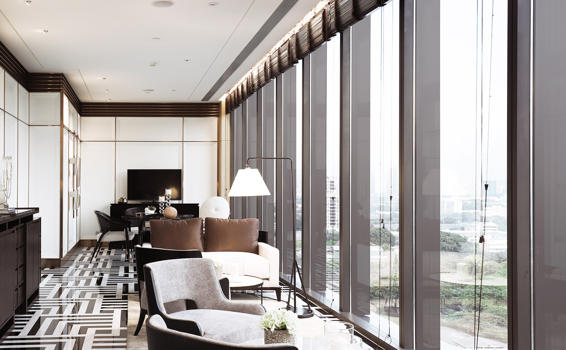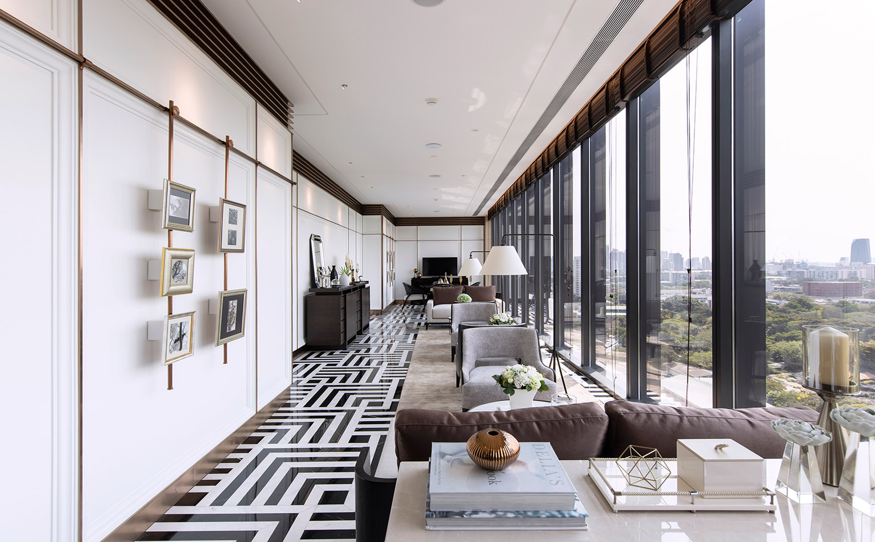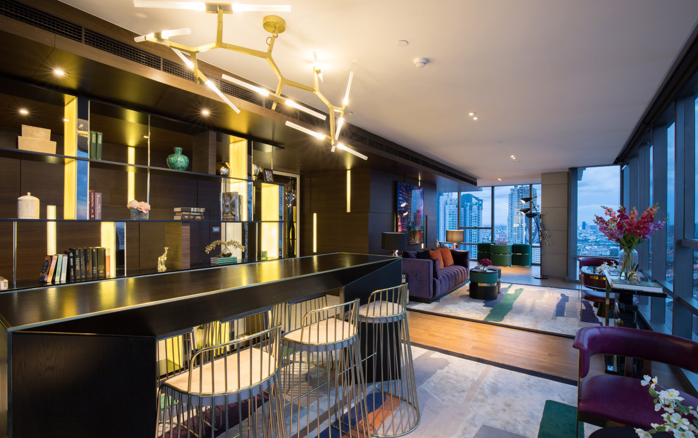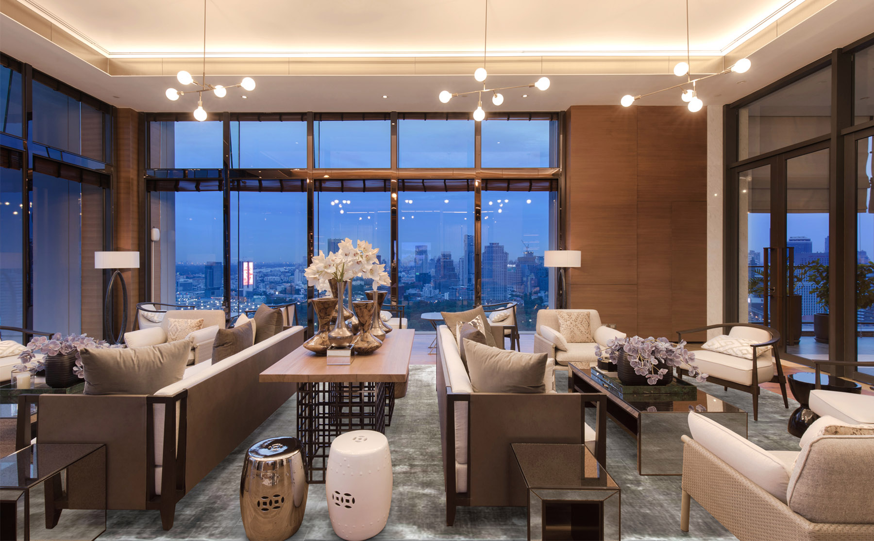 The residence lounge at Sindhorn Langsuan has been meticulously designed to enjoy the picturesque panoramic view of Lumpini park. It is an oasis of tranquility and privacy in the middle of Bangkok. Only materials of highest standard have been selected for enduring utility and distinction by the hands of professional craftsmen.