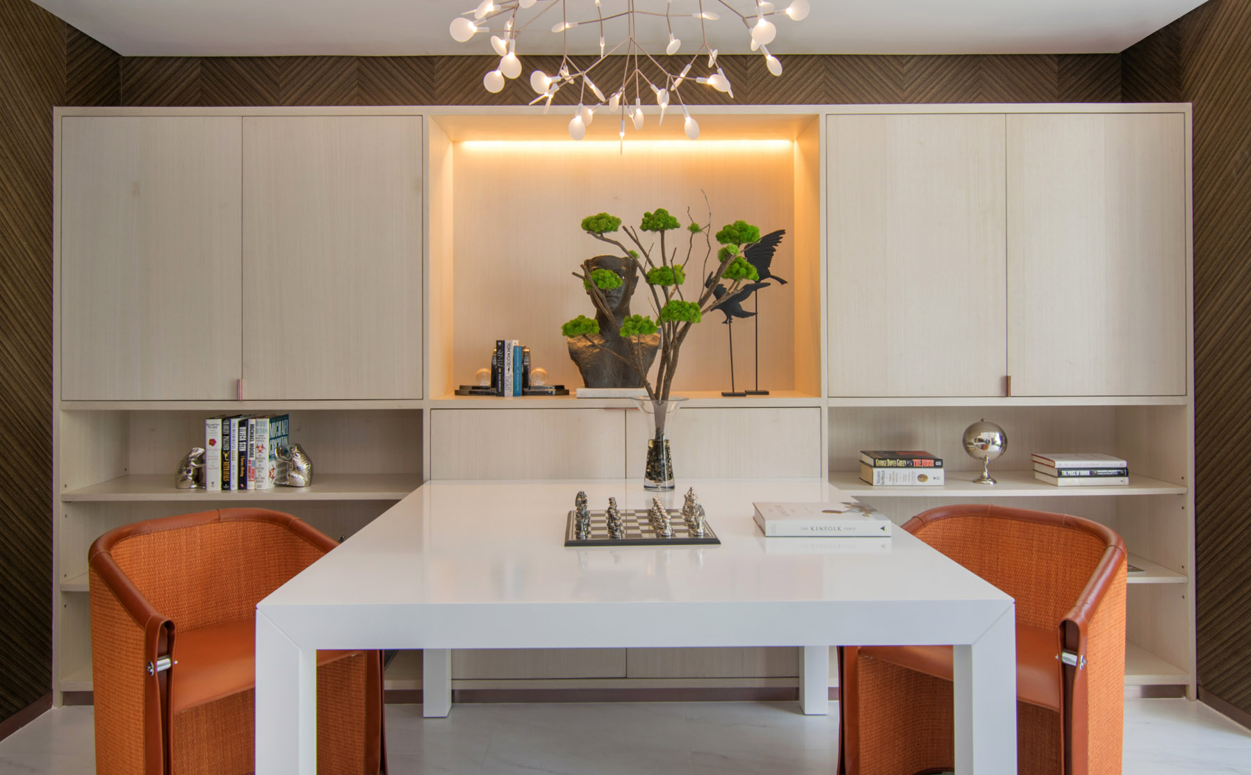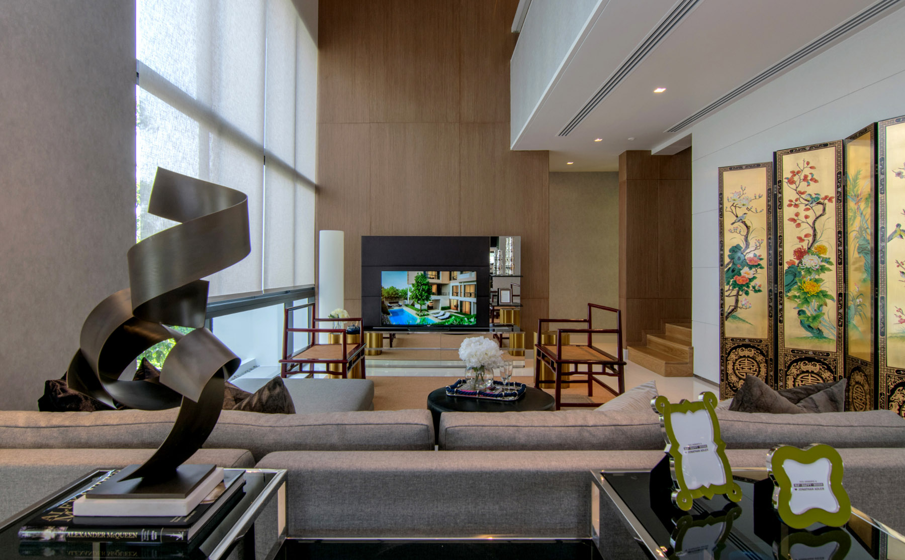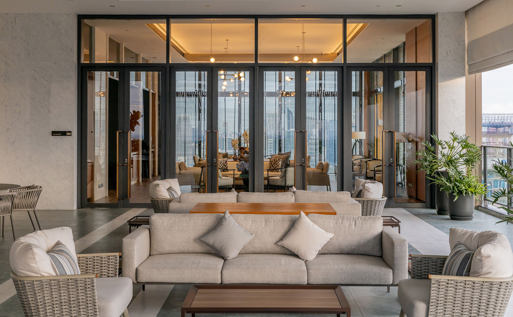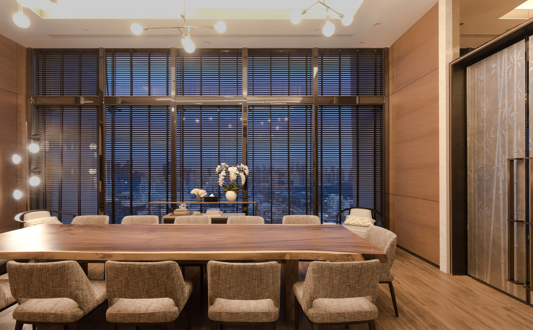 The residence lounge at Sindhorn Langsuan has been meticulously designed to enjoy the picturesque panoramic view of Lumpini park. It is an oasis of tranquility and privacy in the middle of Bangkok. Only materials of highest standard have been selected for enduring utility and distinction by the hands of professional craftsmen.