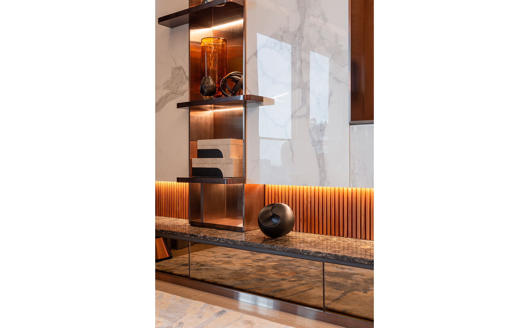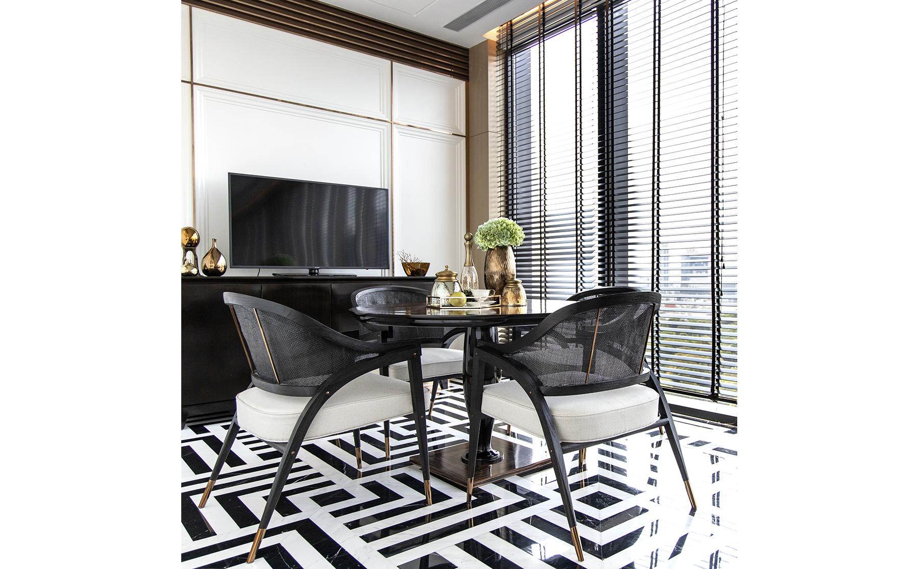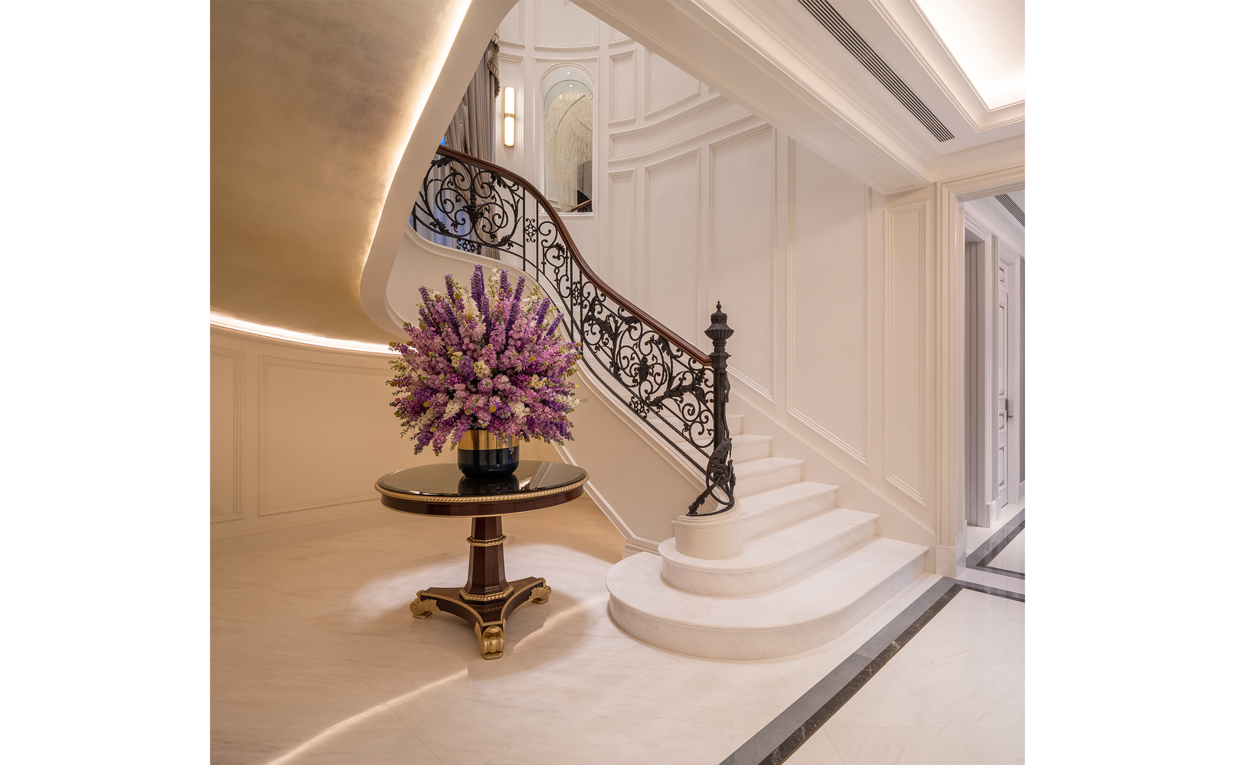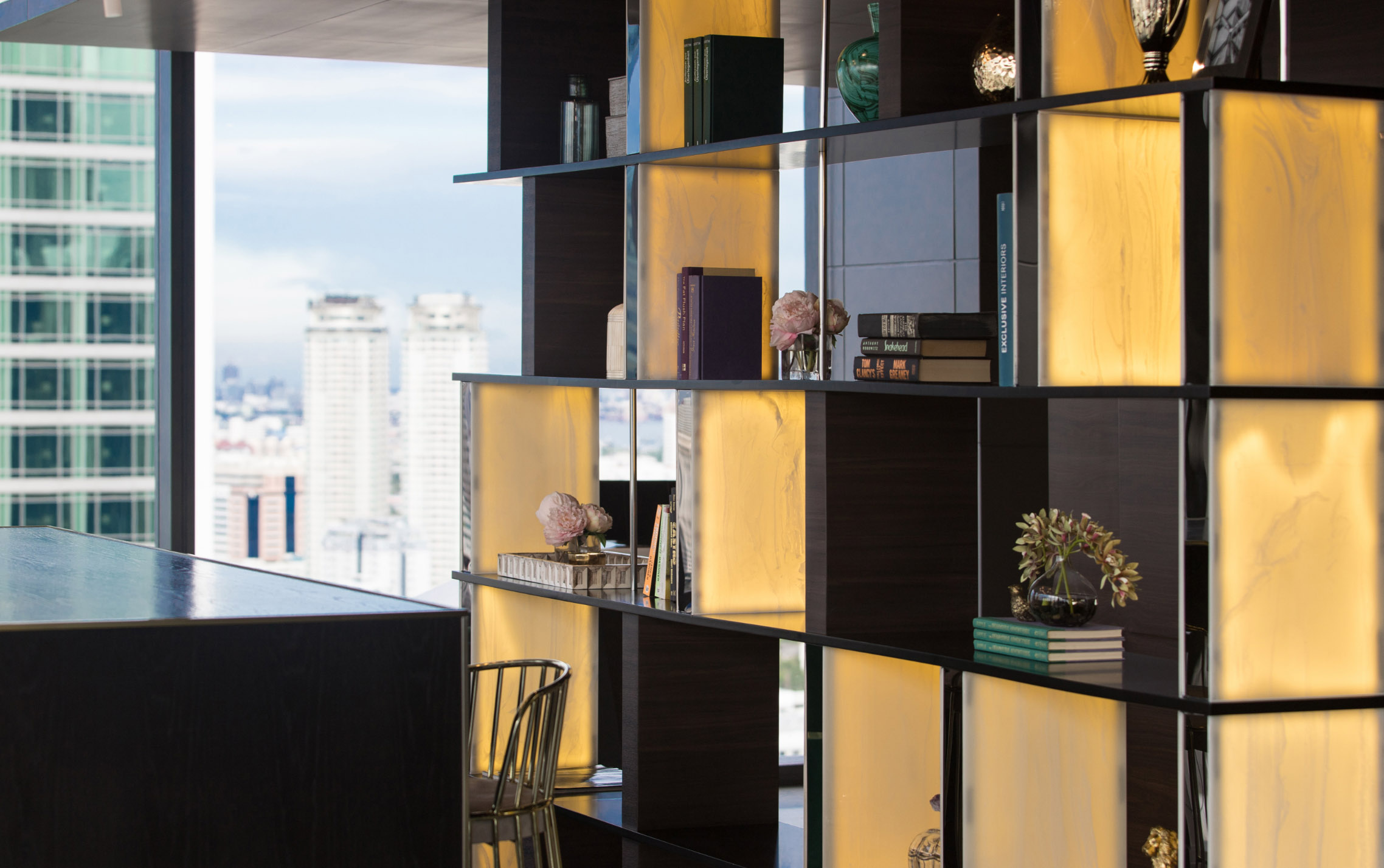 This duplex penthouse unit is a part of The Sukhothai Residences, a 41-storey luxury condominium in the heart of Sathorn road. The key color scheme is based on the belief of ‘Manee Noparattana’ or The Nine Precious Gemstones which is believed to be the most auspicious jewelry in Thai culture.