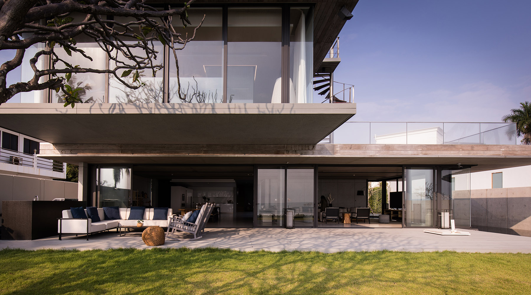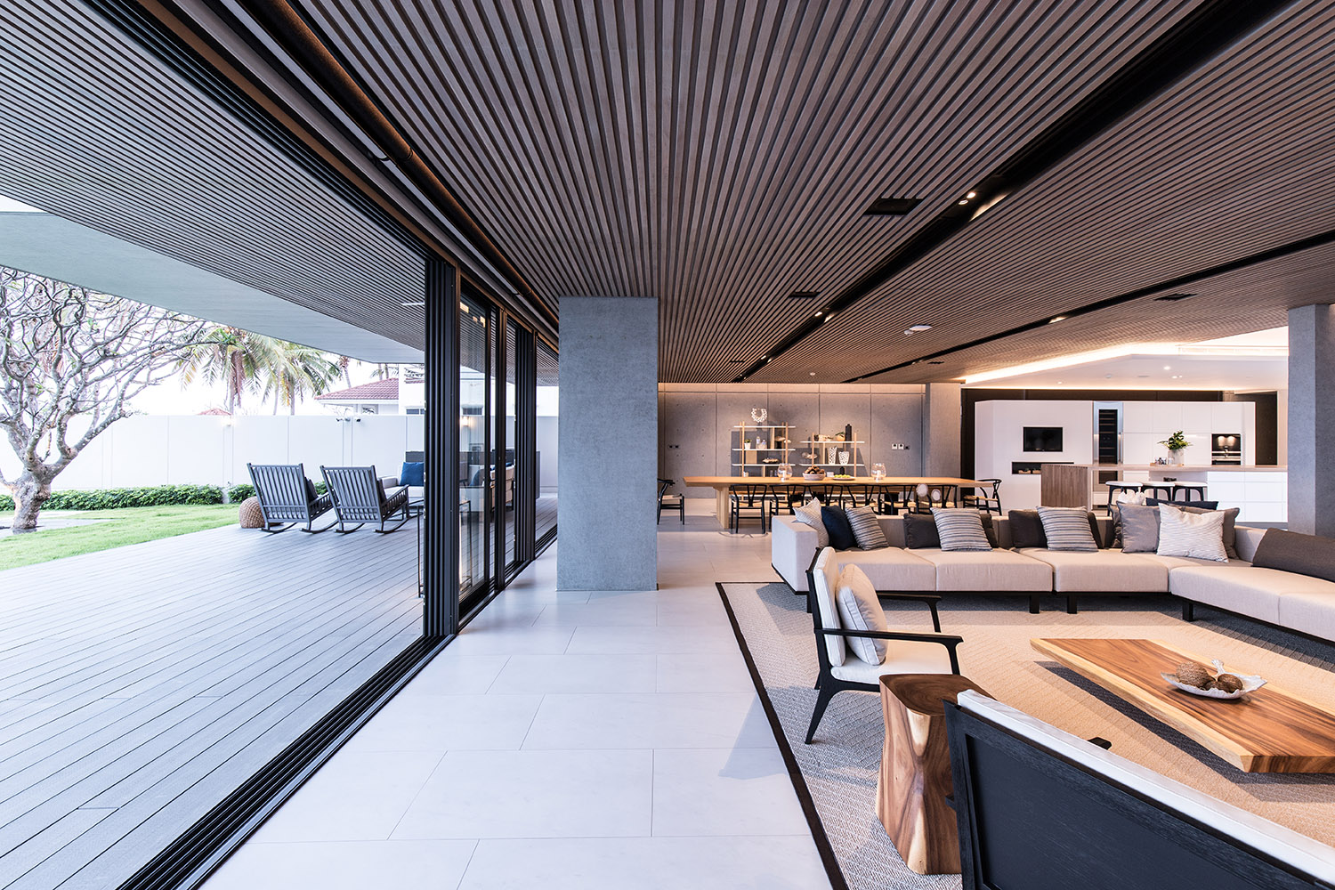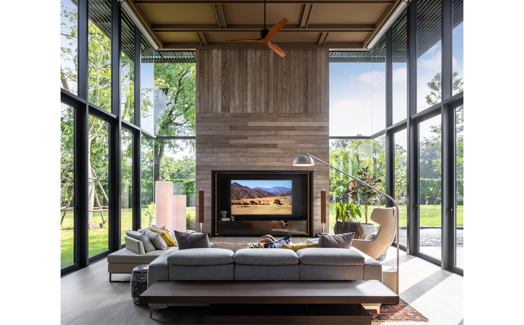 The L-shape design layout has maximized the openness of the green space, allowing the entire home to share a private courtyard, granting each room a view of the garden and creating abundance of air flow and natural light throughout the space.