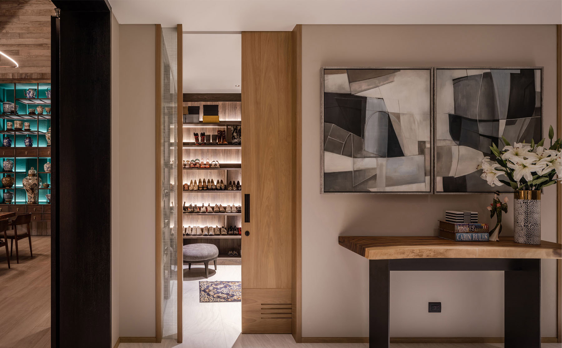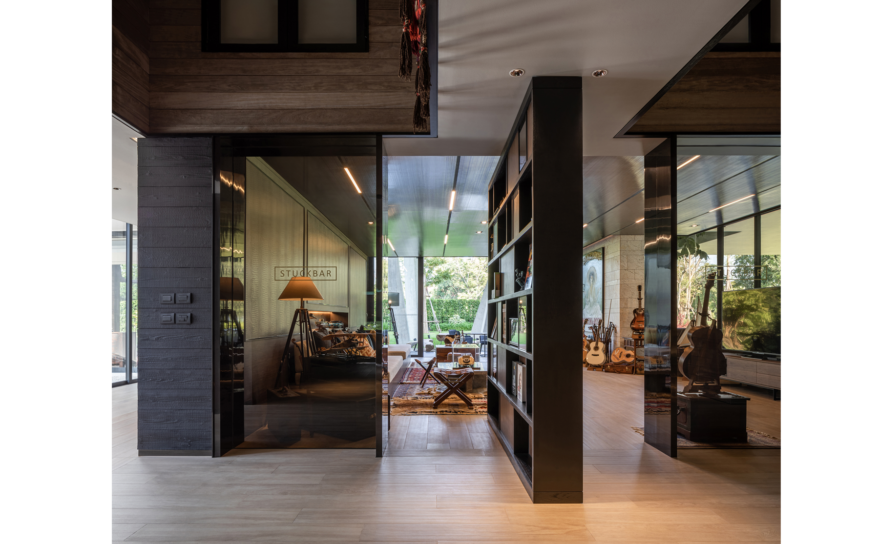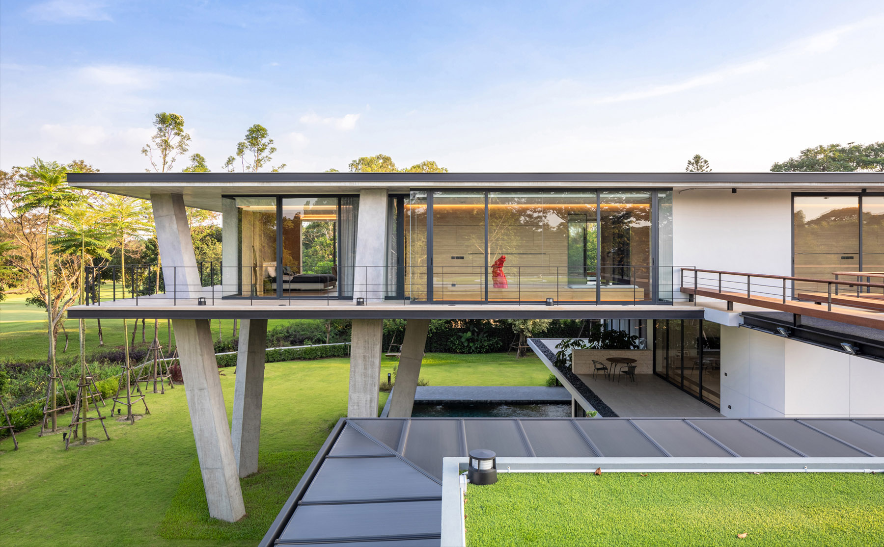 PC House is specifically designed to reflect the owner’s identity through the contemporary and unique mood and tone of the house. Throughout the 1,300 sqm. Interior space, the continuous sense of comfort is realized through the combination of natural materials like 6-month-dried red wood and the Japanese Yakisugi wood. His private collections of artworks, artifact inheritance, and his pursuit for music are used in various areas in order to complement the interior design.