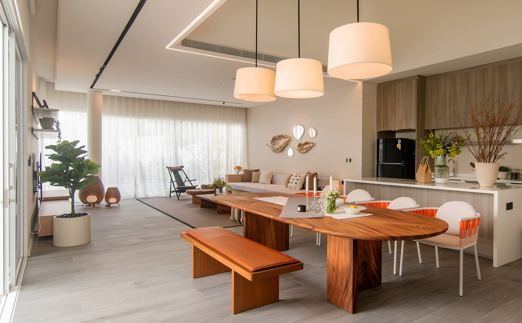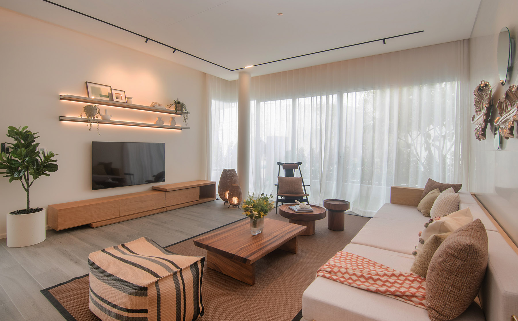 Inspired by simple and charming spirit of Northern Thailand’s Lanna heritage house, Veranda High Residence features a clean contemporary design that blends in with the building’s architectural language and surrounded valley site context. Selected wooden furniture, local artifacts and handcrafted accessories have been carefully sourced from local Chiangmai craftsmen to be featured in the 2-3 bedrooms unit and private villas in a mute palette.